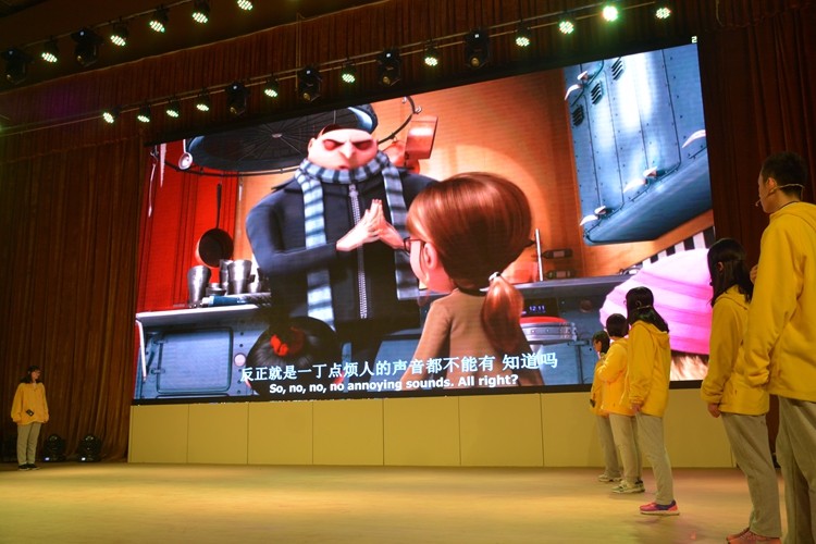 《白雪公主》中惡毒的王后,可愛天真的七個小矮人,美麗無邪的白雪公主給大家留下深刻的印象。國際部《搞笑版灰姑娘》讓大家感受到流行音樂和話劇的無縫銜接,爆笑捧腹的樂感。配音版《精靈旅社》以假亂真的配音讓人驚嘆孩子們語言功底的深厚.....