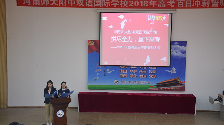 厲兵秣馬,六月出征,為了激發(fā)高三學(xué)子的拼搏精神,增強(qiáng)迎戰(zhàn)高考的信心,在距高考只有100天的日子里,2月28日下午我校高三年級(jí)在道德講堂隆重舉行“拼盡全力,贏下高考”高三百日誓師大會(huì)。校長(zhǎng)滑秀林、副校長(zhǎng)羅強(qiáng)、黨支部書記李現(xiàn)山、學(xué)部主任溫志忠、辦公室主任王有波、后勤部主任李衛(wèi)忠、高三年級(jí)主任白運(yùn)亮等領(lǐng)導(dǎo)及高三全體師生和部分學(xué)生家長(zhǎng)代表參加了此次誓師大會(huì)。