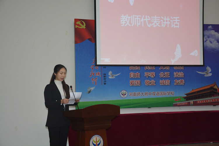 “請(qǐng)相信,一百天的汗水很可能會(huì)換來(lái)一生的幸福;但請(qǐng)記住,一百天的安逸肯定會(huì)留下一輩子的遺憾?!笔墙處煷碓茖?duì)高三全體學(xué)生的叮嚀。她的發(fā)言飽含激情,擲地有聲,表達(dá)了高三全體老師們的決心與斗志——愿和學(xué)生一起并肩作戰(zhàn),愿與他們風(fēng)雨同舟。