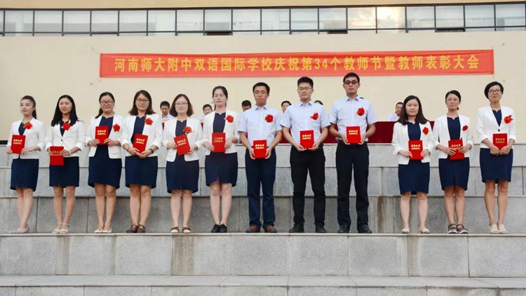 9月10日下午,河南師大附中雙語國際學(xué)校全體師生齊聚操場,隆重舉行第三十四個教師節(jié)慶祝暨表彰大會,大會由羅強副校長主持。