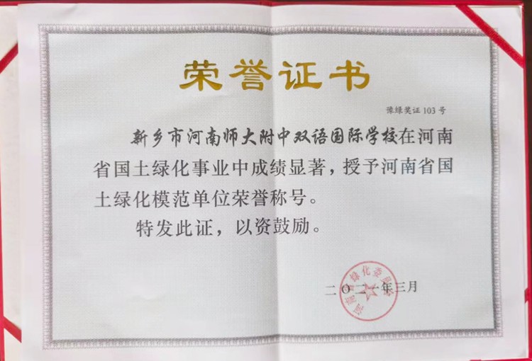 近日,河南省綠化委員會對全省綠化模范單位、綠化獎章獲得者進行表彰,我校被授予“河南省綠化模范單位”榮譽稱號。