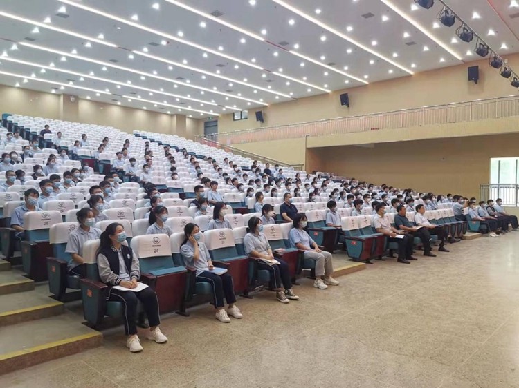 青春有夢敢拼搏,強國有我勇?lián)敗?/span>2021年9月14日下午,“我的未來不是夢”——愛國主義勵志主題教育暨空軍招飛宣講活動在我校劇場隆重舉行。新鄉(xiāng)市誠城卓人學?;懔中iL等校領導出席活動。15名參加2022年河南省空軍招飛初選報名的學生前排就坐,高三年級全體師生參會。本次主題教育活動由我校后勤保障部兼安全辦主任李衛(wèi)忠主講。