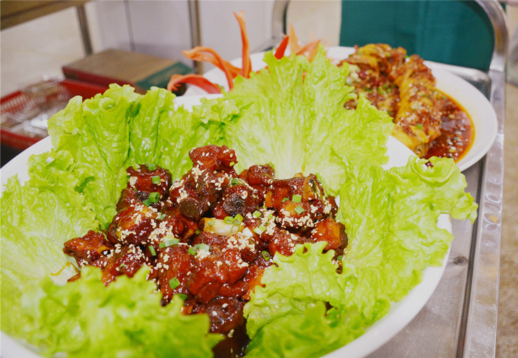 活動(dòng)比賽現(xiàn)場氣氛熱烈,鏡箱豆腐、蒜香魚、糖醋排骨、番茄燉牛腩、西芹炒百合、毛血旺、油燜大蝦、上海生煎、龍鳳呈祥、羊肉熗鍋面、多味披薩、麻辣拌麻辣燙…….選手們的精湛廚藝,贏得了現(xiàn)場評(píng)委和觀賽師生的喝彩。比賽過程中曹揚(yáng)憲院長行云流水的現(xiàn)場書法作品和高一二班王芃悅同學(xué)的獨(dú)舞《萬疆》又將比賽推向了高潮。