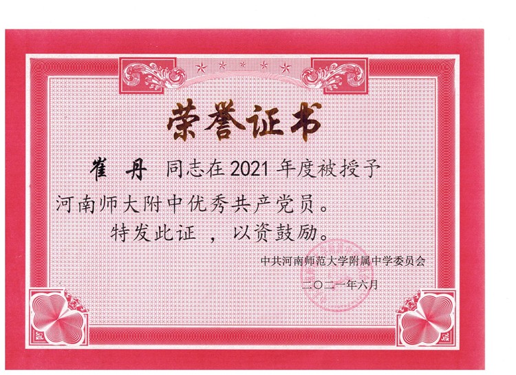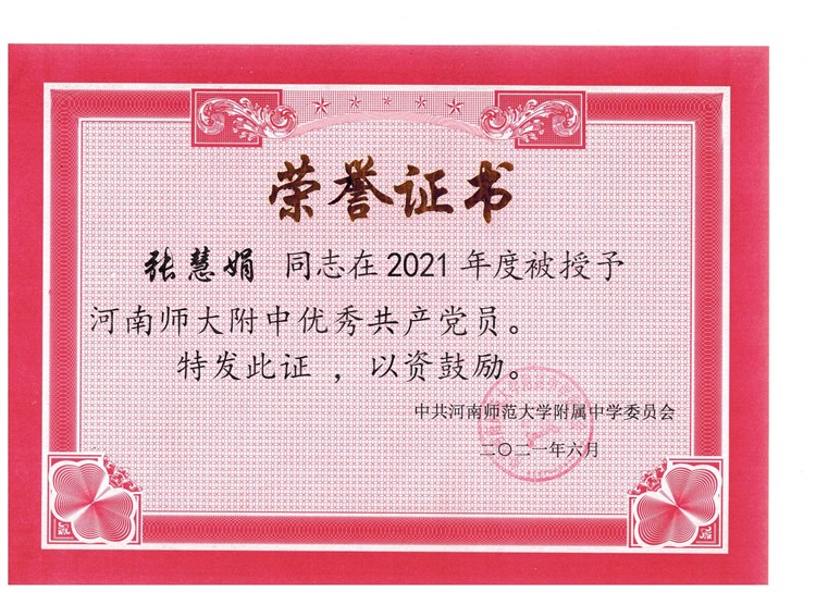 祝賀我校郭學(xué)明、崔丹、高亞超、閆曉穎、王曉慧、張慧娟等老師被評為河南師大附中“優(yōu)秀共產(chǎn)黨員”榮譽稱號。