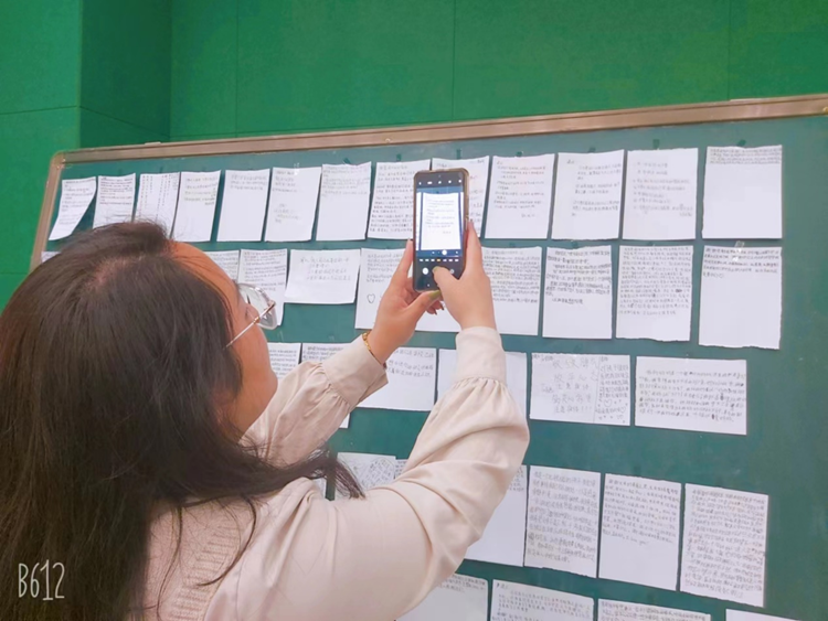 講座進(jìn)行之前,主持人宋云云老師與家長(zhǎng)將學(xué)生匿名寫(xiě)的《給家長(zhǎng)的建議》粘貼在黑板上供家長(zhǎng)觀看了解,便于父母?jìng)兏玫牧私夂⒆拥恼鎸?shí)感受。