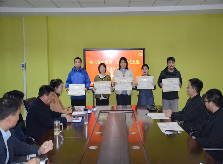 最后,李靖同志宣讀了上學(xué)年宣傳工作先進(jìn)個人的名單,滑校長和楊校長分別為獲獎老師頒發(fā)了榮譽證書。
