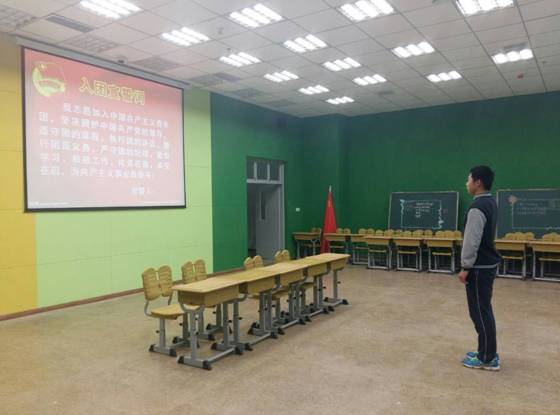 隨后,伴著雄壯的團歌,面對鮮紅團旗,在新團員代表劉鑫源同學的帶領(lǐng)下,全體新團員舉起右手莊嚴宣誓:“我志愿加入中國共產(chǎn)主義青年團,堅決擁護中國共產(chǎn)黨的領(lǐng)導(dǎo),遵守團的章程……為共產(chǎn)主義而奮斗。”青春誓言表達了同學們對共青團組織的無限向往和為團組織增光添彩的豪邁激情!