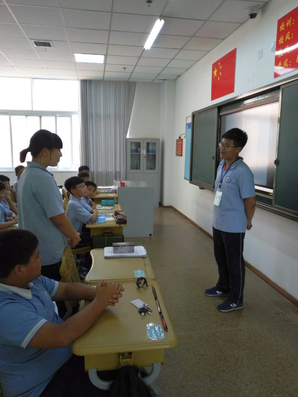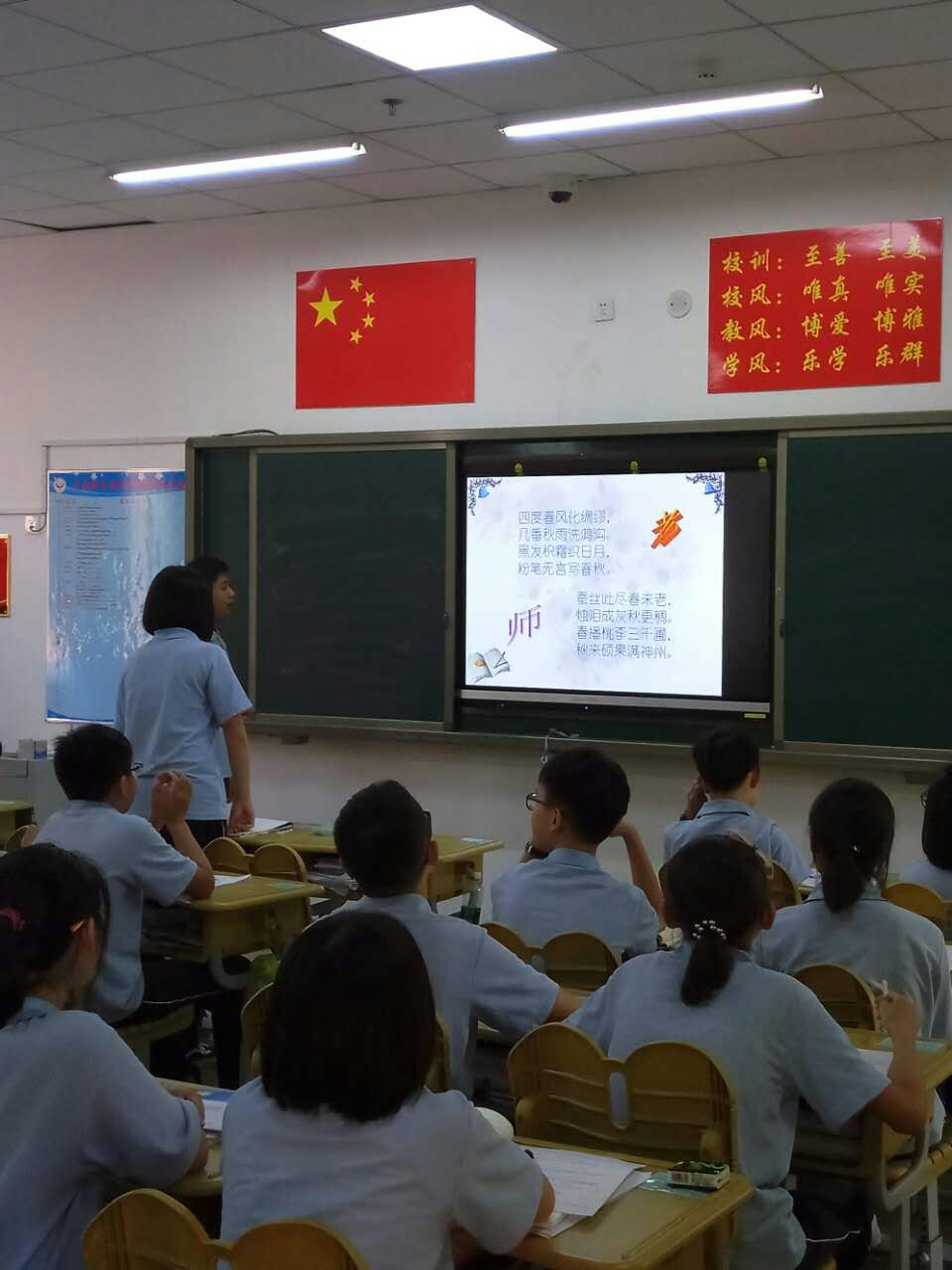 接下來,同學(xué)們各抒己見,表達(dá)了對教師的崇敬與熱愛并說出了自己心目中老師的模樣。