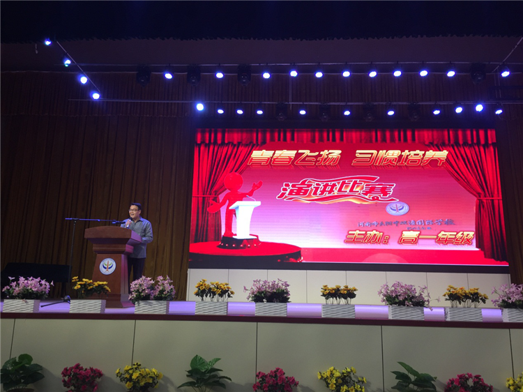 10月27日晚6點30,由高一年級舉辦的“青春飛揚,習慣培養(yǎng)”演講比賽在我校的二樓劇場拉開帷幕。應邀參加本次活動的領導有:副校長羅強,黨委書記兼教科研中心主任李現(xiàn)山,團委書記兼中學部主任溫志忠,中學部主任郭學明。本次比賽共有來自10個班的10位選手參加,高一語文教研組長范靈營,高一語文組老師以及高一年級部分教師擔任本次比賽的評委。
