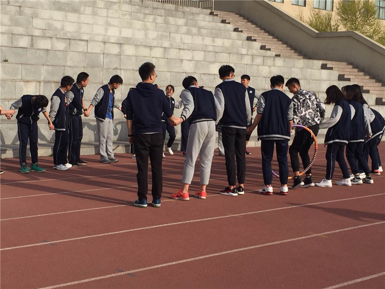 第一個(gè)比賽項(xiàng)目是“穿越火線(xiàn)”。每個(gè)小組成員手拉著手站成一排,從呼啦圈穿過(guò)去,再穿回來(lái),不能用手拿呼啦圈,最先傳送完成的班級(jí)獲勝。此項(xiàng)目考驗(yàn)的是參與者的應(yīng)變能力和靈敏的反應(yīng)速度,以及同學(xué)們團(tuán)結(jié)攜手合作的精神。第二個(gè)比賽項(xiàng)目是“十人十一足”。每個(gè)隊(duì)由10人組成,每隊(duì)成一排并肩站立在規(guī)定的起點(diǎn)處。內(nèi)側(cè)小腿用繩捆住,這樣就成了“十人十一足”。各隊(duì)人員以十一條腿跑步前進(jìn),到達(dá)終點(diǎn)處。此項(xiàng)目考驗(yàn)的是同學(xué)們的專(zhuān)注度、配合力、服從力。剛開(kāi)始有很多同學(xué)步伐不齊,但同學(xué)們一次次地不怕失敗,改進(jìn)態(tài)度、達(dá)成共識(shí)、目標(biāo)一致,最終到達(dá)終點(diǎn)。第三個(gè)比賽項(xiàng)目是擊掌喊出口號(hào)“我們是最棒的團(tuán)隊(duì)”,和左邊同學(xué)擊掌一次喊出一個(gè)字,和右邊同學(xué)擊掌兩次喊出兩個(gè)字,一次類(lèi)推,每次增加一次擊掌一個(gè)字,最先喊出完整口號(hào)的班級(jí)獲勝。此項(xiàng)目看似簡(jiǎn)單,實(shí)則考驗(yàn)同學(xué)們的默契度。經(jīng)過(guò)前兩次的比賽,同學(xué)們很快掌握了項(xiàng)目的訣竅,兩個(gè)班級(jí)一起口號(hào)響亮、擊掌整齊地同步完成任務(wù)。