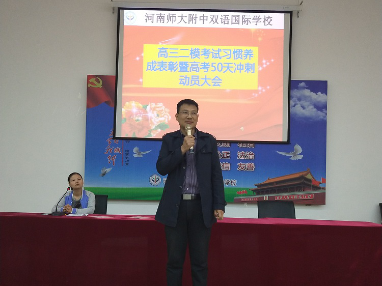 為了進(jìn)一步督促學(xué)生養(yǎng)成良好的考試答題習(xí)慣,再一次給高三學(xué)子樹立信心、加油鼓勁,4月10日下午,高三年級(jí)全體師生在道德講堂開展高三二模考試習(xí)慣養(yǎng)成表彰暨高考50天沖刺動(dòng)員大會(huì)。學(xué)部主任溫志忠出席了此次活動(dòng)。