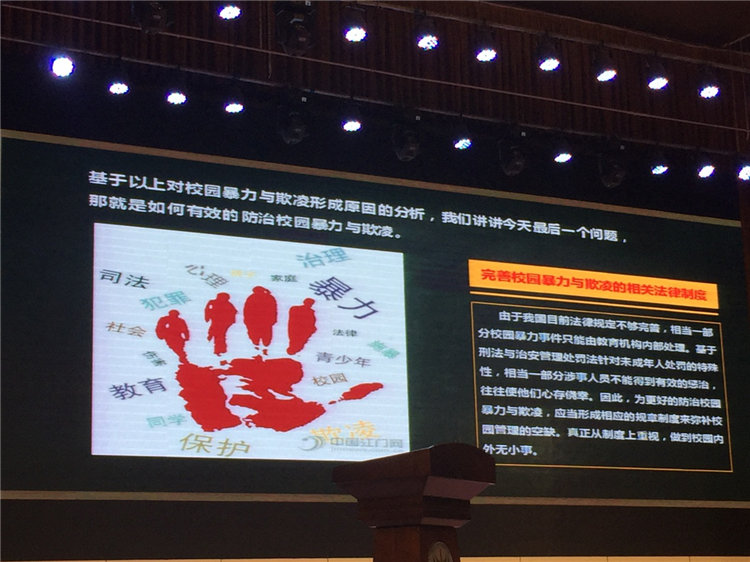 汪劍前輩畢業(yè)于江西財(cái)經(jīng)大學(xué)刑法學(xué)專(zhuān)業(yè),工作已經(jīng)長(zhǎng)達(dá)7年之久。在會(huì)上,汪法官通過(guò)一個(gè)個(gè)活生生的案例,讓學(xué)生明白什么是校園欺凌,校園欺凌產(chǎn)生的原因以及遇到校園欺凌怎么辦。這些生動(dòng)的案例、深刻的教訓(xùn),警示學(xué)生要遵紀(jì)守法,不要做讓個(gè)人后悔、家庭蒙羞、社會(huì)不安的糊涂事情,教育大家要充分認(rèn)識(shí)校園欺凌的嚴(yán)重危害,正確處理好各種關(guān)系,充分珍惜大好的學(xué)習(xí)時(shí)光,以真才實(shí)學(xué)回報(bào)家長(zhǎng)和社會(huì)。