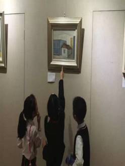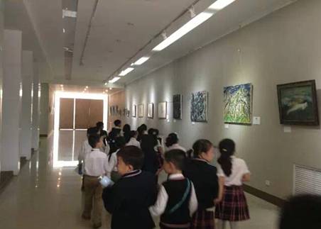 在展廳,孩子們先后欣賞了草書、隸書、楷書等優(yōu)秀書法作品、攝影作品、油畫作品。徜徉于藝術(shù)的海洋中,孩子們倍感新奇而又井然有序。展覽中的每一幅作品都讓孩子們感受著藝術(shù)的博大精深與無限魅力。他們有的一邊欣賞作品,一邊詢問老師們關(guān)于作品的信息,眼神中充滿了對藝術(shù)的向往。