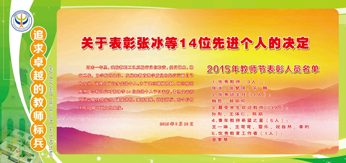 濃郁的校園文化熏陶人,樸實、敦厚的校風感染人,先進的辦學理念教育人,和諧、融洽的環(huán)境氛圍影響人。以下二十四面展示充分介紹了我校濃厚的文化風采,獨特的教育魅力。