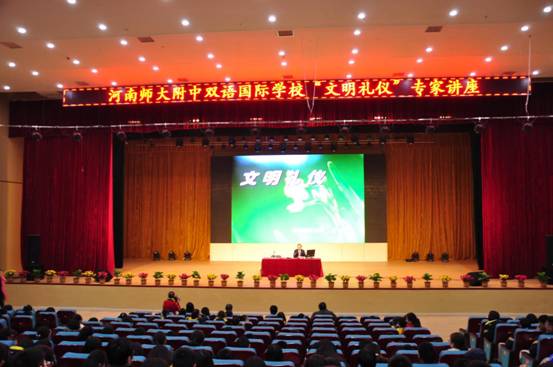2016年3月14日下午,雖然還彌漫著寒冬的氣息,但我校的劇院里卻洋溢著一股暖流。為提升學(xué)生文明素質(zhì)和校園文明程度,規(guī)范學(xué)生禮儀行為,樹立學(xué)生良好形象,我校舉辦了“文明禮儀”知識(shí)講座,河南師范大學(xué)教授王茝為全校師生上了一場生動(dòng)的“文明禮儀”知識(shí)課,這也是我?!傲?xí)慣養(yǎng)成月”活動(dòng)的一個(gè)重要組成部分。校長滑秀林、教科研發(fā)中心主任兼小學(xué)部主任李現(xiàn)山聽取了講座,中學(xué)部主任宋玉亮主持。